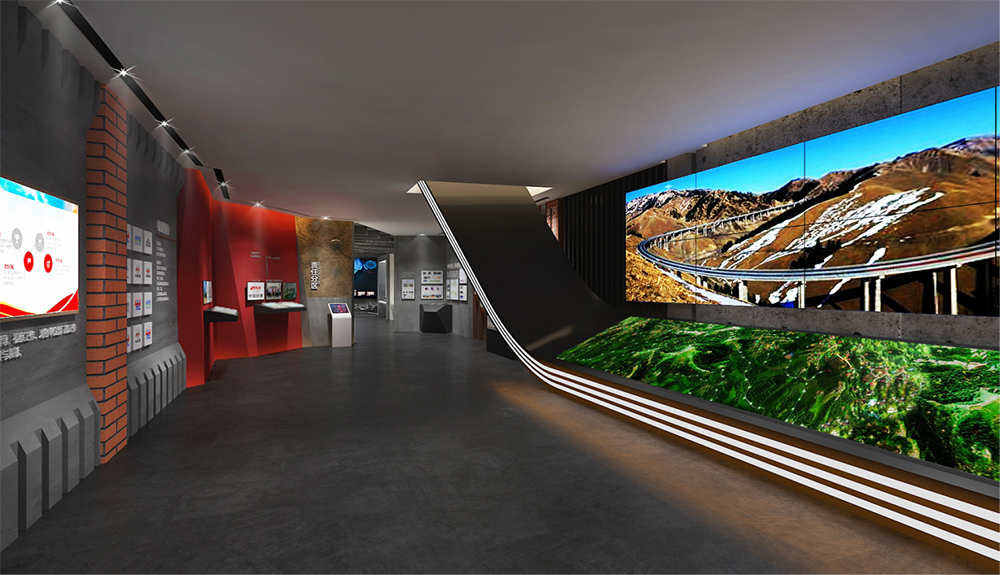 廣東交通集團汕西改擴建展覽館圍繞“以創(chuàng)新制勝之路、引領(lǐng)改擴建發(fā)展”策展主題,將傳承之路、引領(lǐng)之路、共贏之路、未來之路四大板塊內(nèi)容有機串聯(lián)。從老路變遷史到黨建引領(lǐng),從科技創(chuàng)新到路基路面、橋梁隧道等工程板塊、從管理創(chuàng)新到品質(zhì)工程等,使整個展廳內(nèi)容充分完整,且具有前瞻性、引領(lǐng)型,同時展覽館運用了大量全息、工程動畫、工程應(yīng)用場景等高科技展示手段,使得該展覽館成為全國高速公路改擴建標(biāo)桿展館。
